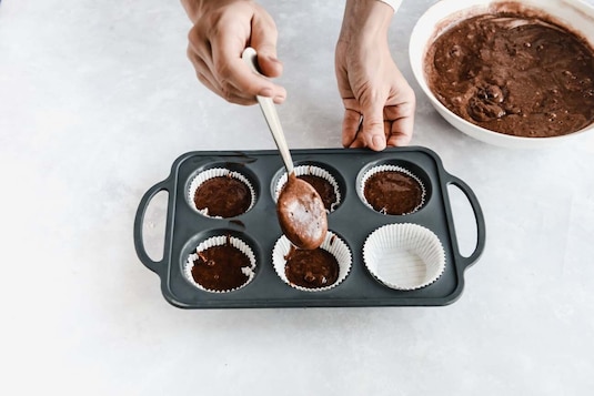 Babeczki będą smakować jeszcze lepiej, gdy do ciasta dodasz pokrojoną w bardzo drobne kawałki gorzką czekoladę.