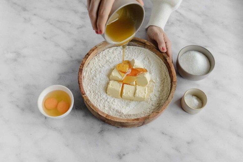 Do miski przesiewamy mąkę oraz sodę. Dodajemy pokrojone w kostkę masło, wlewamy miód, wsypujemy cukier oraz wbijamy jajka. Całość mieszamy i zagniatamy na gładkie ciasto.