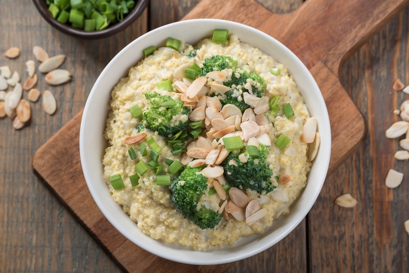 Kaszotto z kaszy jaglanej z sosem serowym i brokułami