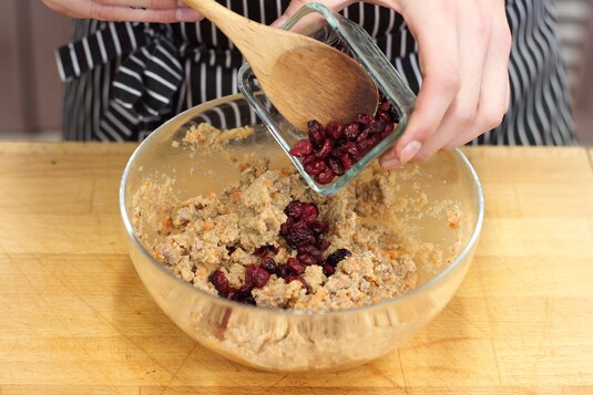 Mięso wraz z warzywami wystudź, następnie odcedź i zmiel w maszynce. Do farszu dodaj odcedzoną żurawinę. Farsz wymieszaj i dopraw do smaku.