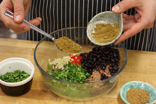 Wraz z przyprawami Knorr dodaj wszystko do mięsa i dokładnie wymieszaj.