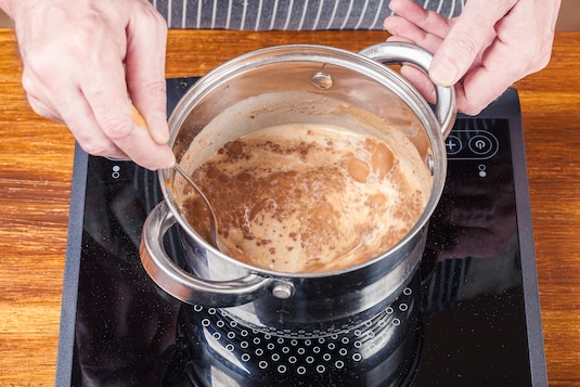 Do mleka dodaj przyprawy i masło klarowane. Podgrzej nie doprowadzając dowrzenia.