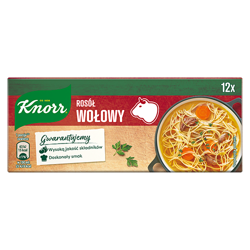Chcesz wszystkich zaskoczyć wyjątkowo aromatyczną zupą lub pyszną pieczenią ukrytą pod warstwą esencjalnego sosu? Knorr Rosół Wołowy doskonale podkreśli charakter potraw, wydobywając z nich to, co najlepsze – nietuzinkowy smak oraz zachwycający aromat połączonych ze sobą składników. Przygotowanie bulionu wołowego jest niezwykle proste. Wystarczy jedynie kilka kroków. Zaczynamy!