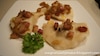 Kurki dokładnie oczyść, opłucz i osącz. Większe sztuki możesz pokroić. Cebulę i czosnek obierz, posiekaj. Bulionetkę rozpuść w ok. 3/4 szkl. wody. Zamarynowane mięso obtocz w mące, ale otrzep z jej nadmiaru. Na patelni albo w rondlu rozgrzej mocno resztę oleju i obsmaż na nim kawałki mięsa - mają być mocno zrumienione ze wszystkich stron.