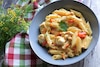 Gnocchi w sosie pieczarkowym ze smażonymi warzywami