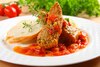 Plasterki polędwiczki serwujemy na kaszy z szpinakiem .