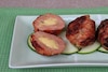 Dokładnie rozbij tłuczkiem porcje indyka (najlepiej przez folię spożywczą). Zdejmij folię i na środek każdej porcji mięsa nałóż porcję farszu z wątróbki i gałązkę pietruszki.