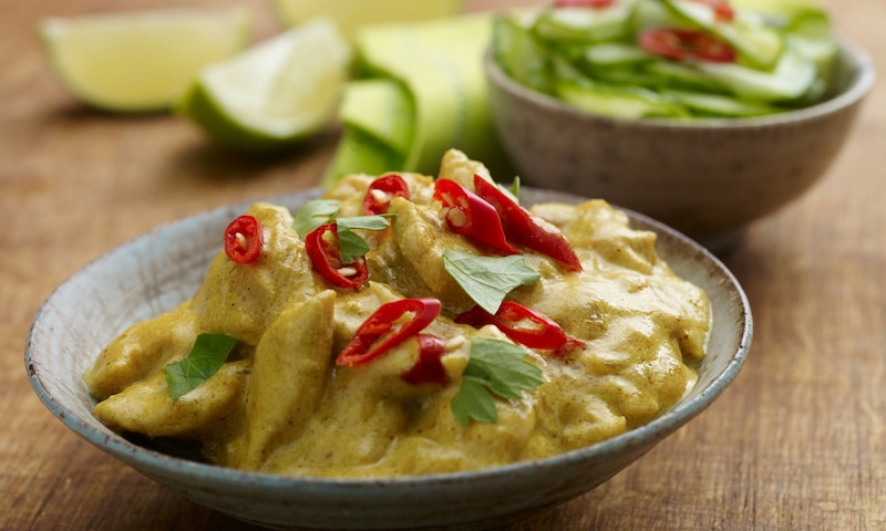 Szybkie curry z kurczaka z sałatką ze świeżego ogórka