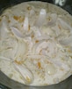 Mięso pokrój w kostkę o boku 2 cm, a cebulę w piórka. Pieczarki przekrój na pół, większe na ćwiartki.