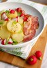 Podawaj potrawę udekorowaną gałązką bazylii i posiekaną natką.