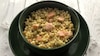 Szynkę, cebulę i cukinię kroimy w kostkę.