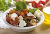 Kurczaka pokroić na plasterki natrzeć lekko kostką rosołową i delikatnie podsmażyć na oliwie i odstawić do ostudzenia. Ogórek i pomidorki kroimy na ćwiartki.