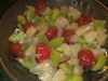 Rzodkiewkę i pomidory pokroić w cząstki. Dodać do roszponki, na wierzchu ułożyc kozi ser.