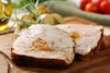 Schab oczyść z błon. W środku za pomocą noża z długim ostrzem zrób nacięcie. W nacięcie włóż farsz. Mięso dodatkowo skrop pozostałym octem i oprósz Przyprawą do mięs Knorr. Odstaw w chłodne miejsce na 24 godziny.