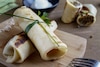 Danie z grzybami prażonymi można podawać w towarzystwie bagietki, zamienionej w chrupiącą grzankę z masłem czosnkowym.