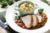 Tartę podawaj na ciepło lub zimno z jogurtowym dipem z czosnkiem i szczypiorem.