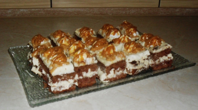 BISZKOPT: białka ubić z 0,5 szkl. cukru . Na sztywno białka, pod koniec dodać cukier. Żółtka ubić z 0,5 szkł. cukru. Mieszając drewnianą łyżką dodać białka do żółtek a następnie przesiać mąkę z proszkiem do pieczenia i dalej wymieszać łyżką drewnianą. Powoli i dokładnie aby biszkopt nie stracił lekkości. Piec w 170 stop. C przez 30-35 min. Wystudzić i przekroić na pół.