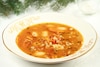 Pory umyj, oczyść i pokrój w krążki. Schab pokrój w paski, a natkę posiekaj.