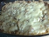 Posyp wierzch zapiekanki wiórkami masła, przykryj i piecz 30 minut w średnio nagrzanym piekarniku. Podawaj z chlebem i surówką.
