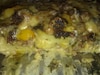 Włóż potrawę do żaroodpornego naczynia wysmarowanego tłuszczem i wysypanego bułka tartą. Posyp pozostałym serem i polej tłuszczem z boczku. Piecz w gorącym piekarniku przez 20 minut. Zapiekankę rzymską podawaj posypaną natką pietruszki oraz surówką.