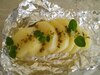 Tacki ustawić na grillu, przykryć wierzch kawałkiem folii, zostawić na ok. 1 godzinkę, aby ziemniaczki ładnie się zarumieniły. Jeśli korzystamy z naczynia żaroodpornego, ziemniaki pieczemy wtedy w piekarniku.