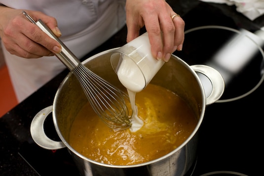 Całość zmiksuj za pomocą miksera na jednolitą, gładką masę.